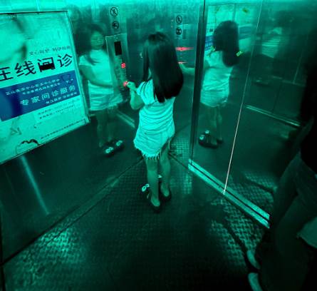 這位網友興奮(或者說心有余悸)地講述了他的「驚魂」體驗。他分享的圖片里,展現的儼然是一家年代久遠、廢棄感十足的恐怖醫院:暗黑壓抑的電梯轎廂仿佛吞噬著光線,幽深神秘的長走廊看不到盡頭,墻壁上滿是斑駁脫落的油漆和銹跡,還有一個堆著陳舊實驗器材、氣氛詭譎的實驗室……場景之逼真、氛圍之陰森,足以讓所有網友頭皮發麻。
