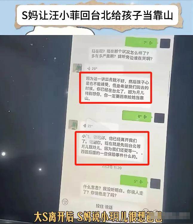 3月21日,台灣知名娛記葛斯齊,放出了汪小菲和S媽在大S離世后的聊天記錄截圖,意外曝出了大S的遺愿。