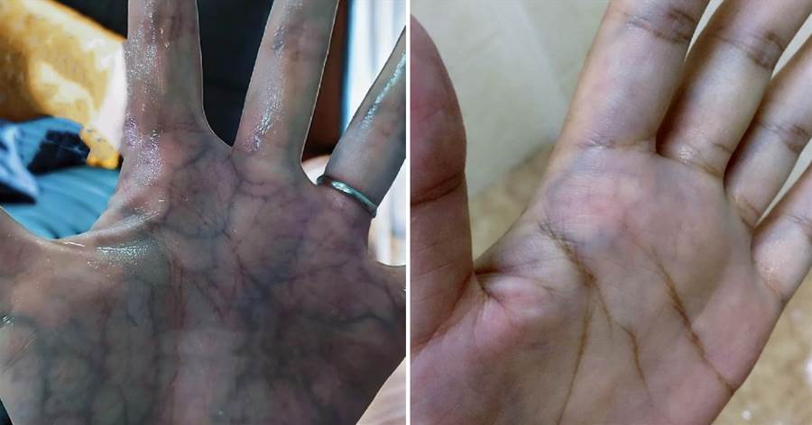有網友分享:「靜脈血藍色的,動脈血紅色的。 缺氧,說明你的末梢循環差,人體的末梢循環在手指腳趾還有頭部。