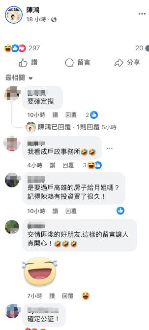 」陳鴻也提及等王月好了,要一起去地政事務所公證,暖心喊「會等她的」,足見兩人好情誼,使眼尖網友引起討論,推論兩人之間可能有房地產的買賣,足見私交很深!