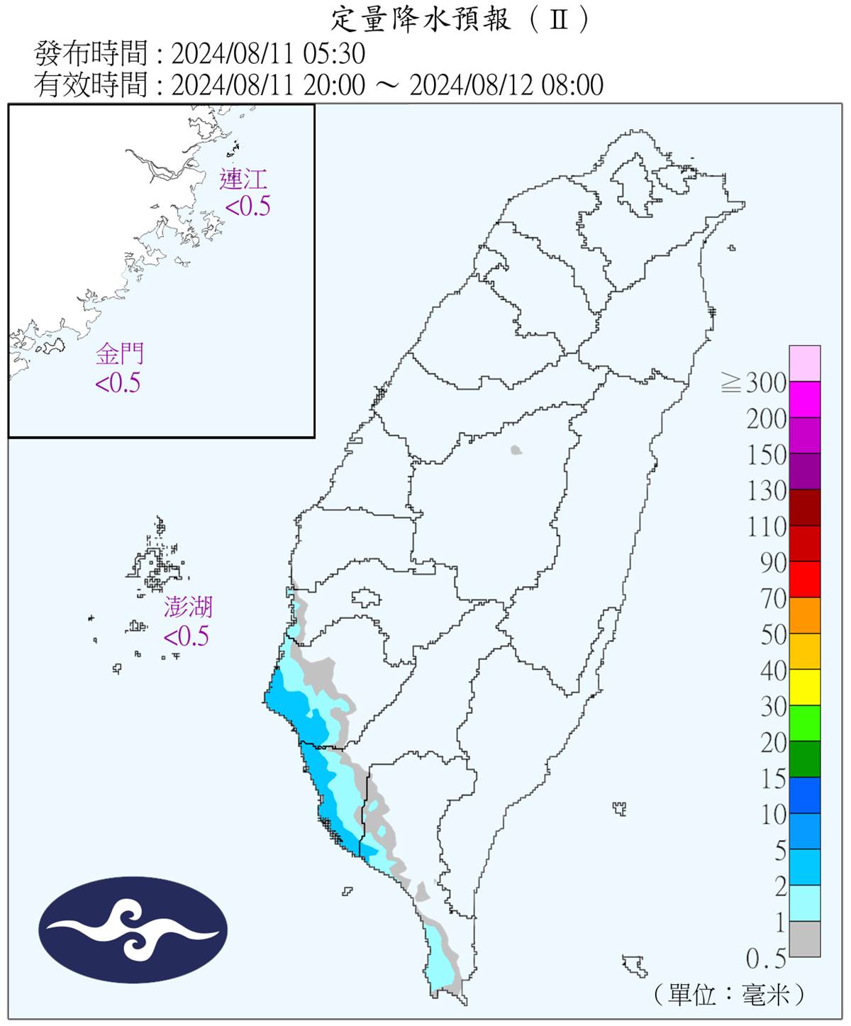 與此同時,氣象署在今晨也發布了大雨特報,指出西南風的影響下,台中、彰化、高雄及屏東地區今天可能出現局部大雨,短時強降雨的機率較高,特別提醒民眾注意防范雷擊及強陣風。