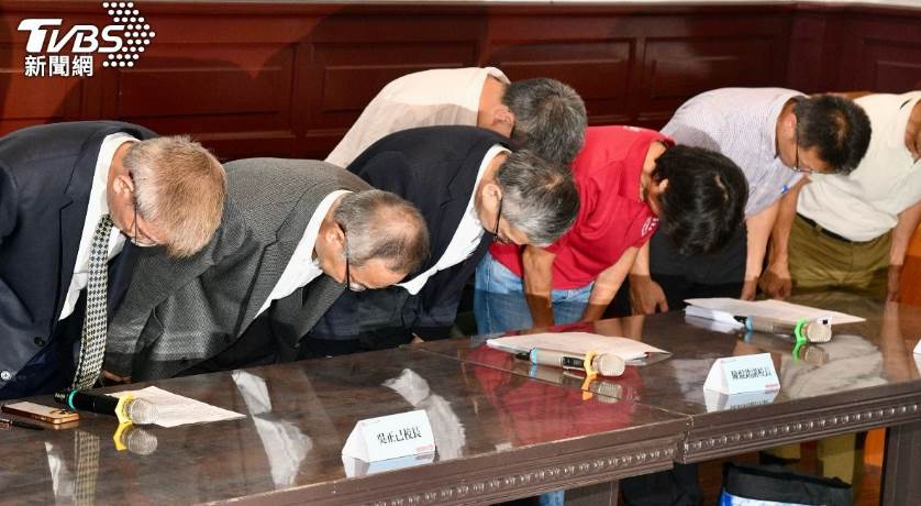 台師大校長吳正己于記者會一開始,就起身向社會大眾以及女足隊學生們道歉,同時要求現場副校長、主任,以及涉案的女足隊教練周台英等人,全體起立鞠躬道歉。