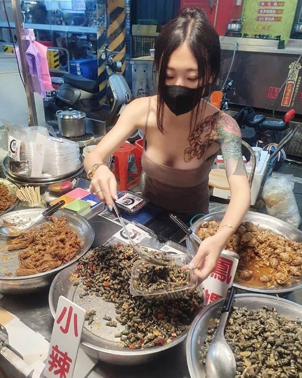 邵薇因長相姣好、身材火辣,成為攤販中的「嬌」點。(圖/FB@爆廢公社公開版;IG@s386528)