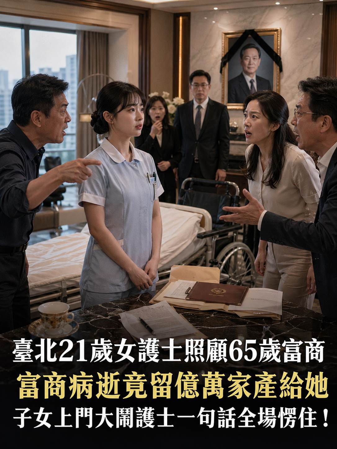 在場的目光瞬間聚焦在一位年僅21歲的女護士鍾佩玲身上——她竟是這份遺產的唯一繼承人!包括天母別墅、內湖工業用地,還有價值3億臺幣的現金,一樁樁一件件都被邱振坤毫不拖泥帶水地贈予了這個普通的女孩。