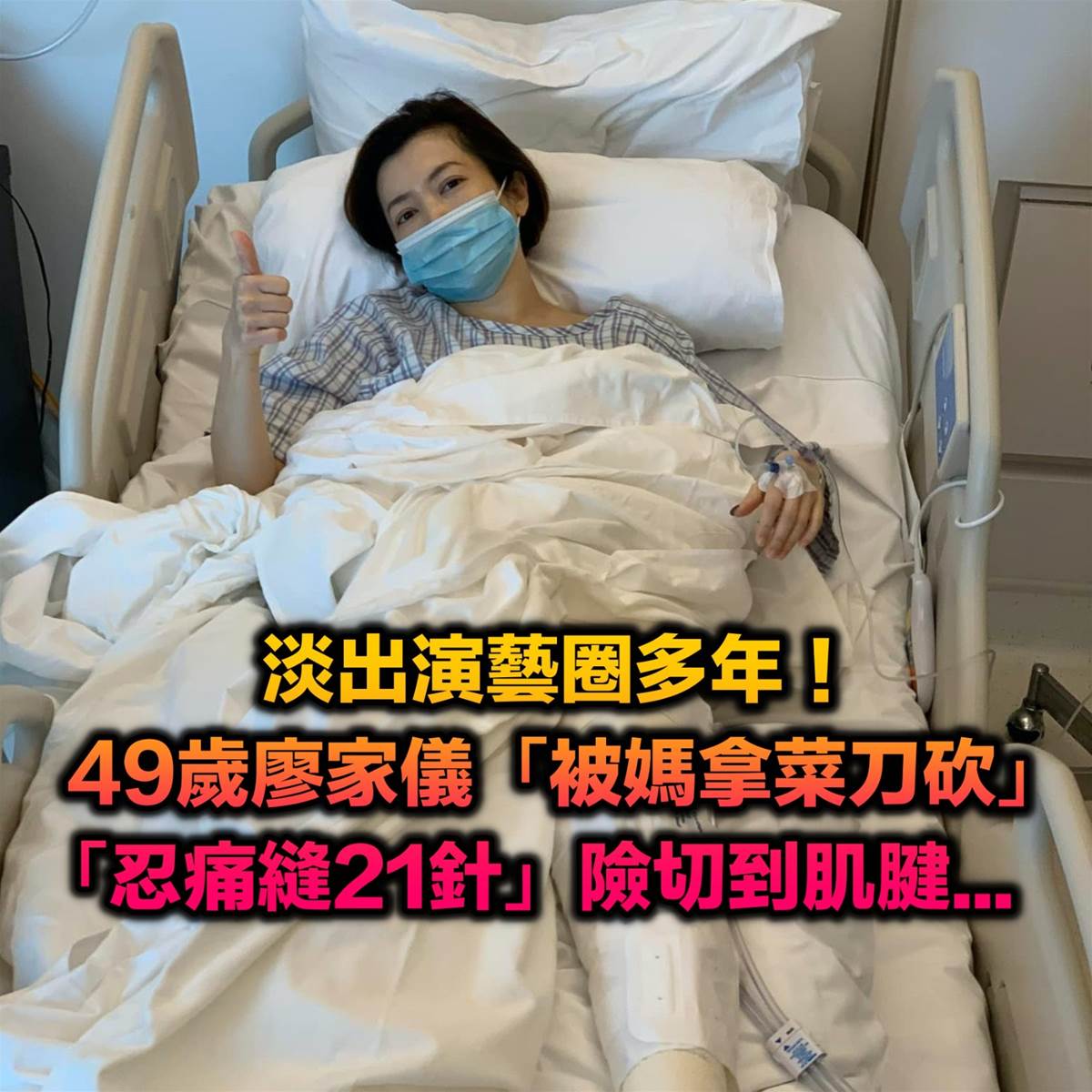 根據《TVBS》報導,廖家儀表示自己小時候跟著媽媽在市場裡賣豬腳,某年端午節她剛選完中國小姐選秀,趕回家幫媽媽做生意,不料剛好遇上爸爸來跟媽媽討錢,當時廖家儀正在旁邊找客人錢,沒想到媽媽一個激動剁下菜刀,竟不偏不倚的砍在她手上!廖家儀歷歷在目的回憶道:「其實真正剁下去那個瞬間沒有血是白色的,傷口很深差點切到肌腱。