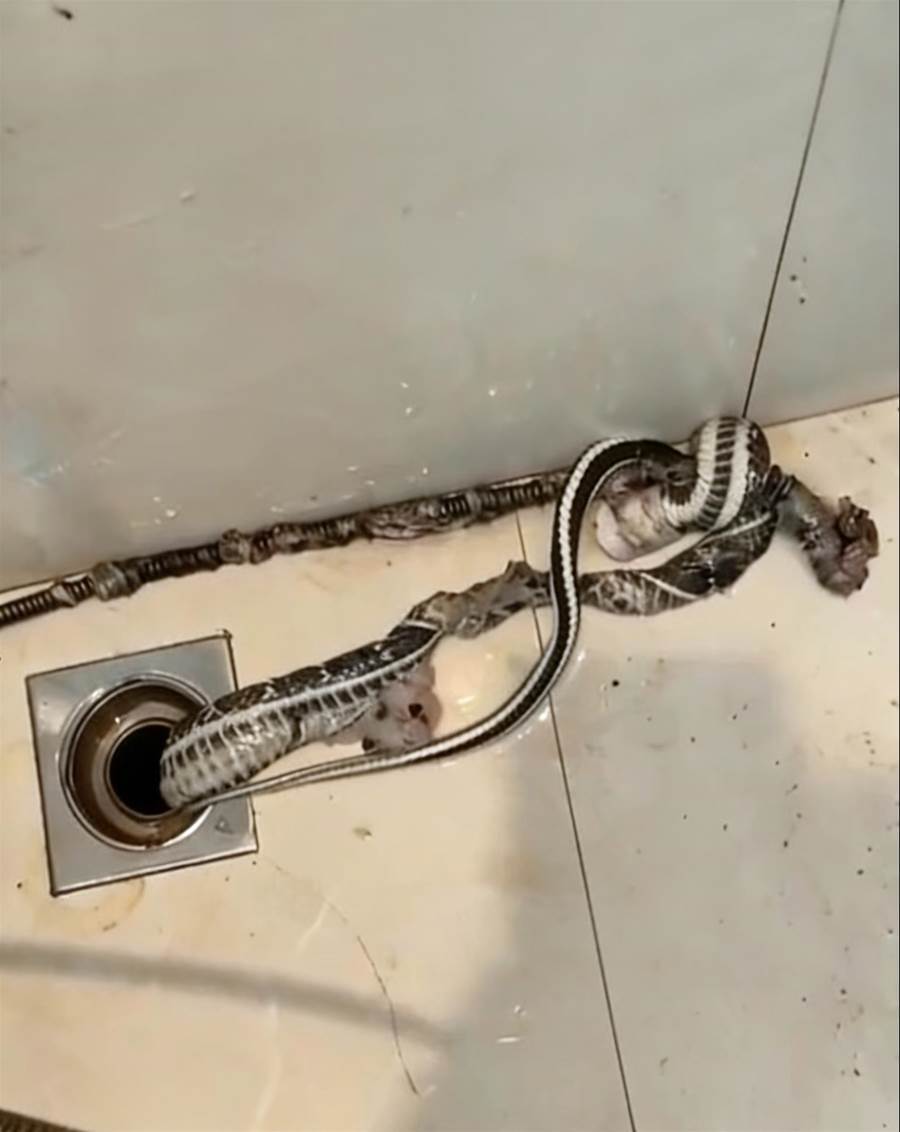 老張定了定神,走近了仔細瞧。蛇頭耷拉著,眼睛閉著,確實已經沒了氣息。 他用手比劃了一下,這條蛇至少有一米長,身上的鱗片看著還很清晰,就是渾身僵硬。 干這行三年,疏通過幾百個下水道,油污、頭髮、石子什麼都見過,唯獨沒見過管道里藏著蛇。 老張趕緊從工具箱里翻出塑料袋,小心翼翼把蛇從管子上解下來包好,又把浴室的地面徹底清理干凈,才收工離開。 這事兒沒幾天就傳遍了整個小區。