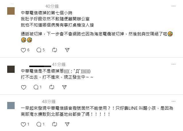 還有人手機已經斷訊超過7個小時,完全不知道發生什麼事,連打給中華電信客服報修都撥不出去,氣炸怒轟太誇張。