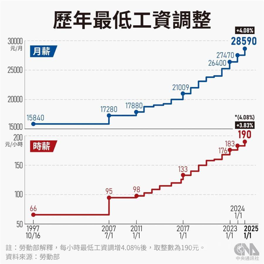 勞資雙方即將于9月展開年度最低工資審議,全國產業總工會等勞方團體已提出明確訴求,主張基本工資調幅至少應達4%,才能有效抵銷近年累積的物價漲幅。根據主計處統計,過去三年CPI年均漲幅達2.8%,若以現行月薪28,590元計算,調漲4%後將增至29,734元,時薪則從190元調升至198元。勞團強調,此調整僅能勉強維持邊際勞工的實質購買力,距生活工資標準仍有顯著差距。