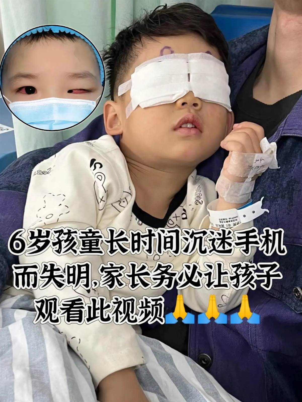 (六歲孩童因父母長期在外務工孩子給老人照料,長期給孩子手機玩游戲,幾乎都在跟手機相伴,由此引發諸多并發癥,最終導致失明。其家長追悔莫及,可為時已晚。)