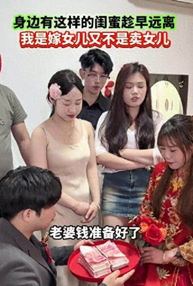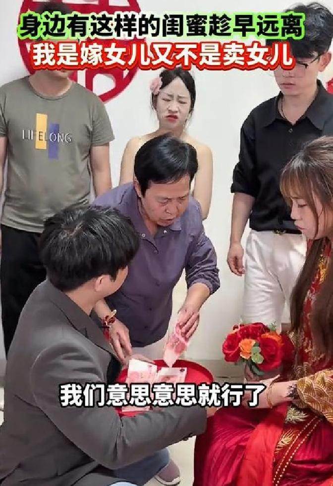 那閨蜜就只能灰溜溜地閃人了吧。丈母娘捏著幾張錢,隨手抽出一百塞給新娘——「意思到了就行,好好過日子,比啥都強。