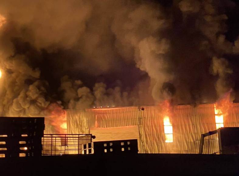 高空畫面顯示,熊熊烈焰如同黑夜中的火炬,一路舔舐著廠房的每個角落,黑煙團團升起,直到消防人員歷經數小時的奮戰,才能將火勢控制住。
