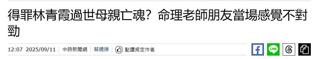 台灣有個叫廖美然的命理老師,最近上綜藝節目時,分享了一段自己的 「親身經歷」,說自己有朋友不小心得罪了林青霞母親的魂靈。