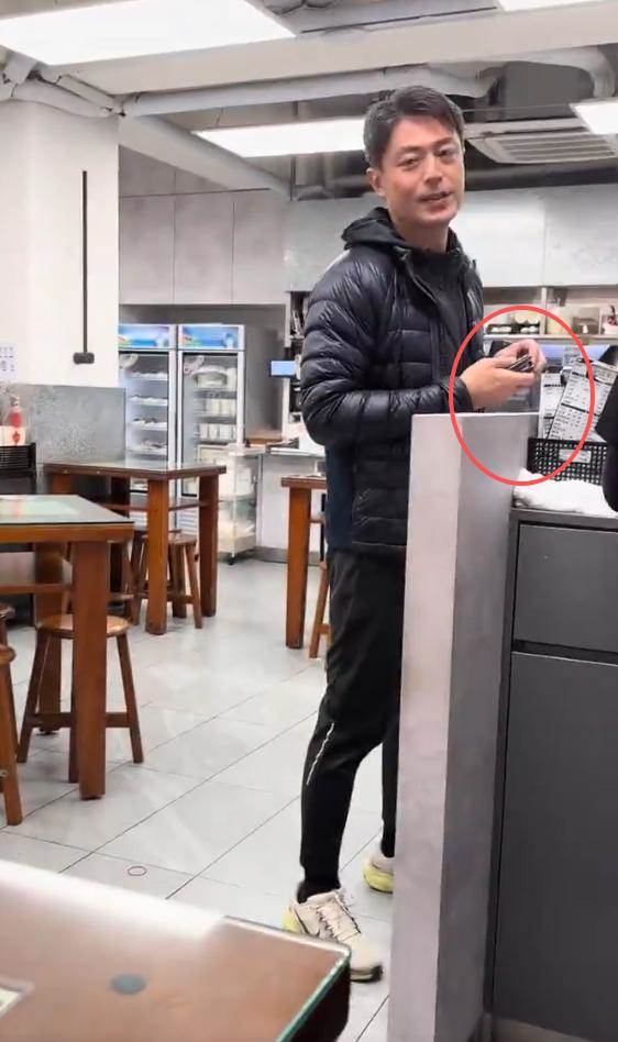 除此之外,霍先生當天的穿著打扮也像極了「老年人」,一件藏藍色的羽絨服,配上一條緊身褲和運動鞋。