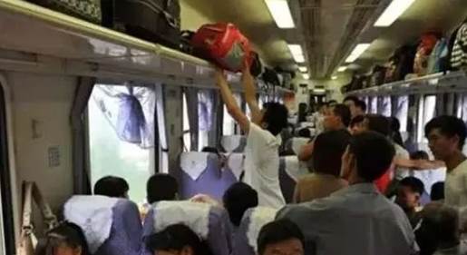 春運期間,在由杭州開往成都的K529次列車上,旅客嚴重超載。