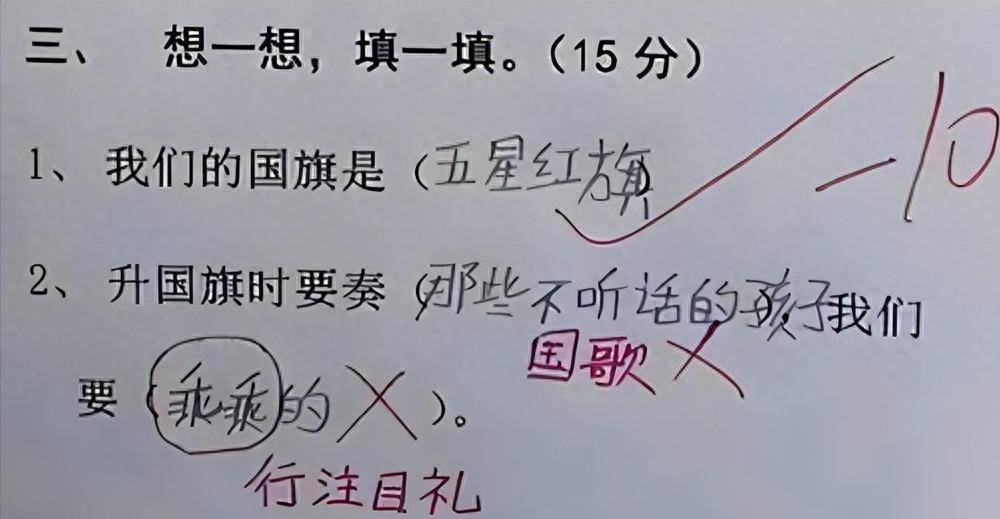 你有沒有過這樣的經歷?晚上翻孩子試卷時,剛看第一題就差點把筆扔了——明明題目讓「把數字倒著寫」,他卻真的把「3」寫成「ε」,「6」寫成「9」,一筆一劃還特工整;再看語文題,「升國旗時要奏()」,他填「那些不聽話的孩子」,后面還補一句「我們要乘乘的」,你一邊拍著桌子笑,一邊又忍不住罵:「這孩子到底有沒有聽老師講課?」