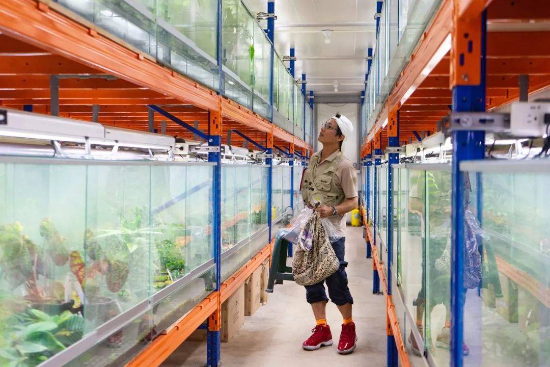 這裡總共收藏了32587種植物,台灣目前有記錄的植物,不過5000多種而已,這裡的蘭花、苔蘚、秋海棠等植物都是世界第一豐富。45歲的阿介,已經在這裡工作了一年多,是保種中心最特別的研究助理和植物獵人。