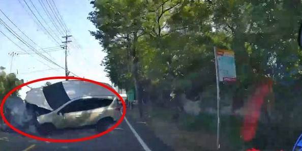 一輛休旅車在左轉時與對向直行的灰色奧迪車相撞,撞擊力度相當強烈,導致休旅車當場翻覆,奧迪車的車頭也幾乎全毀,另外還有一輛車被波及。