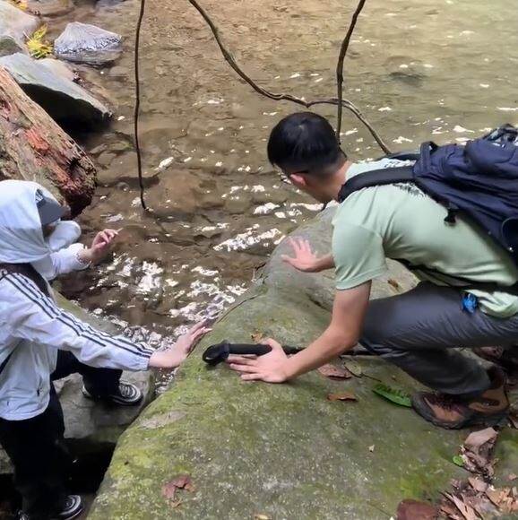 為了擺脫蜂群,他們嘗試各種辦法,包括脫掉鞋子躲進水裡,甚至用火驅趕,卻通通沒有效果。就在幾乎要絕望的時刻,她注意到鞋子順著瀑布往下漂流,突然靈機一動——沿著山壁有條天然形成的「瀑布滑梯」,他們可以藉由溪降逃出去!三人終于成功脫困下山。