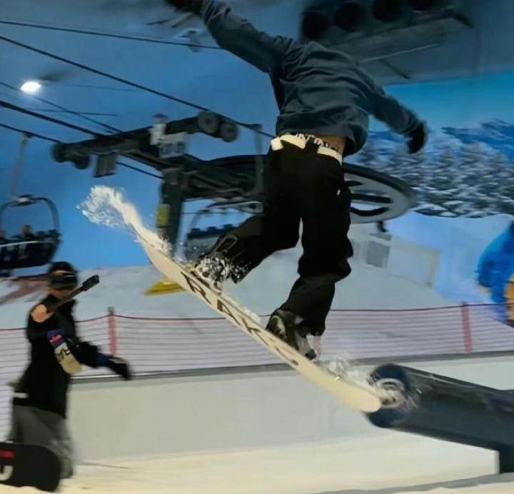 他前不久還帶著兒子一起出去玩,兩人在室內滑雪場被網友拍到了。