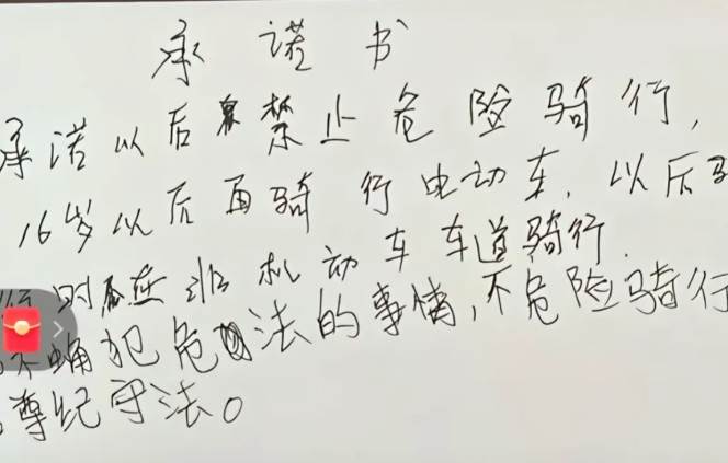 鑒于四名少年均系初次違反交通法規,且認錯態度較好,員警在對其進行了嚴肅的批評教育和普法宣傳后,本著「教育為主、處罰為輔」的原則,要求涉事少年及其家長共同簽署了一份《交通安全承諾書》。承諾書明確要求少年們今后必須嚴格遵守交通法規,家長則承諾將加強監管和教育,共同杜絕此類危險行為的再次發生。
