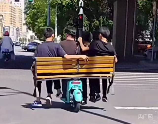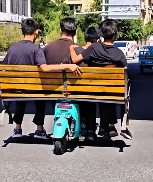 仔細一看,原來有人在狹窄的電動車座位上硬生生地放置了一張長條板凳,四名男子就這樣擠坐在板凳上騎行。車輛在行駛中明顯重心不穩,搖搖晃晃,場面看起來十分驚險,隨時可能發生側翻或碰撞事故。目睹此景的網友們在表達震驚之余,也紛紛呼吁交警部門介入處理,消除這一巨大的交通安全隱患。
