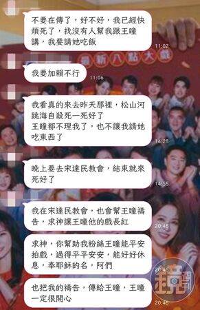 據了解,這名男子在各個粉絲社群、戲劇相關群組中發出令人不安的言論,「不給王瞳的聯絡方式,就會殺人警告」。由于王瞳正在林口民視拍攝新戲,該男子多次表示要到民視總部附近等候,「我現在要去林口民視四周找看看有沒有王瞳,打死王瞳」、「已經到林口運動公園了,要走路去民視打死王瞳」。
