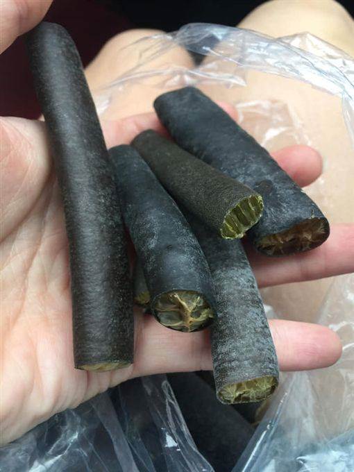 由于照片中的食材,乍看僅是數條像是某種植物的黑色條狀物,讓人思來想去都不知道究竟為何物,因此整個貼文曝光後,也立刻引來大批網友的朝聖關注,並紛紛猜測「看起來像是阿勃勒的豆莢」、「表皮還有內部好像乾掉的茄子」