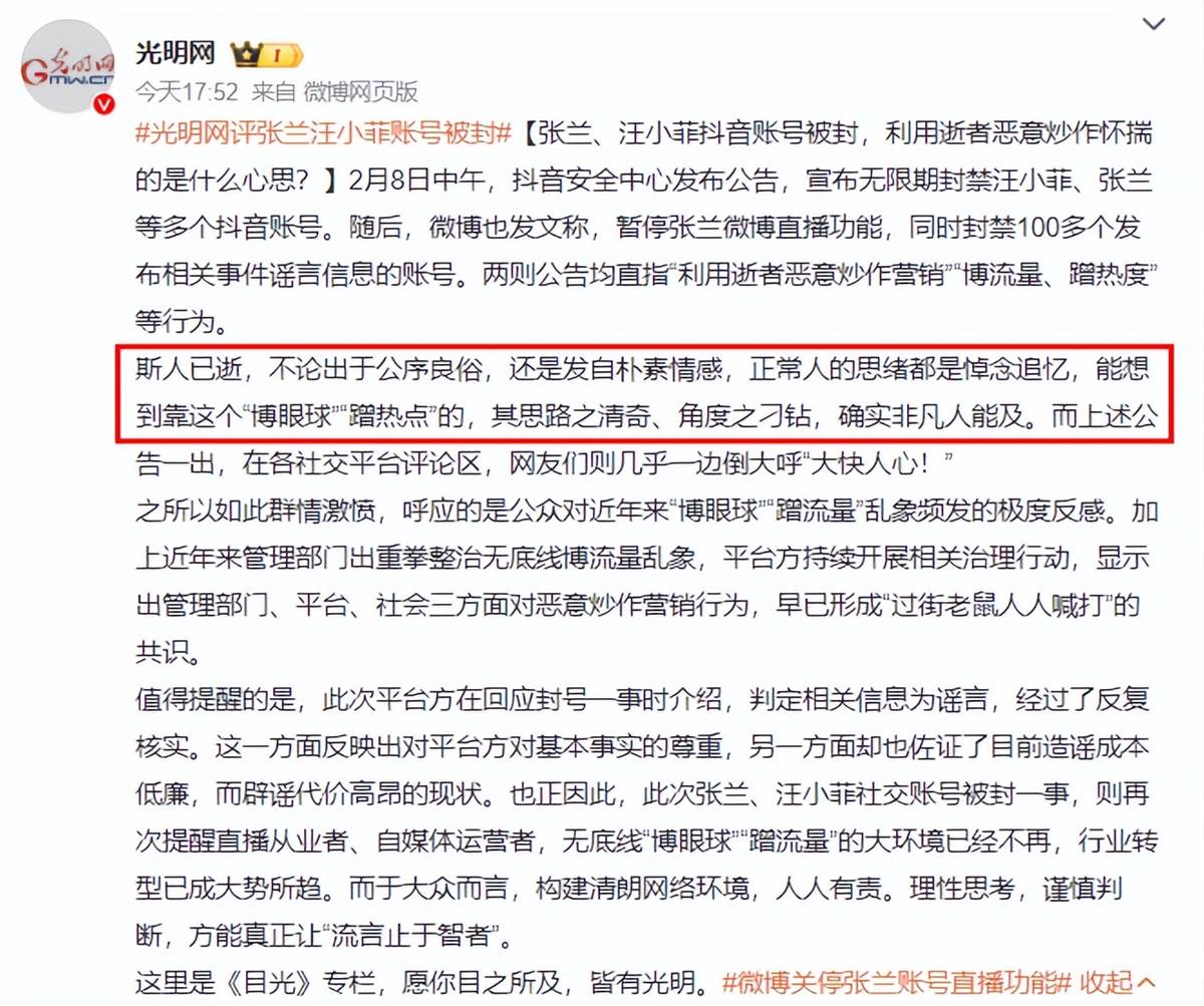 小編最后和大家分享光明網對該事件的評價(定性):斯人已逝,不論出于公序良俗,還是發自樸素情感,正常人的思緒都是悼念追憶,能想到靠這個「博眼球」「蹭熱點」的,其思路之清奇、角度之刁鉆,確實非凡人能及。