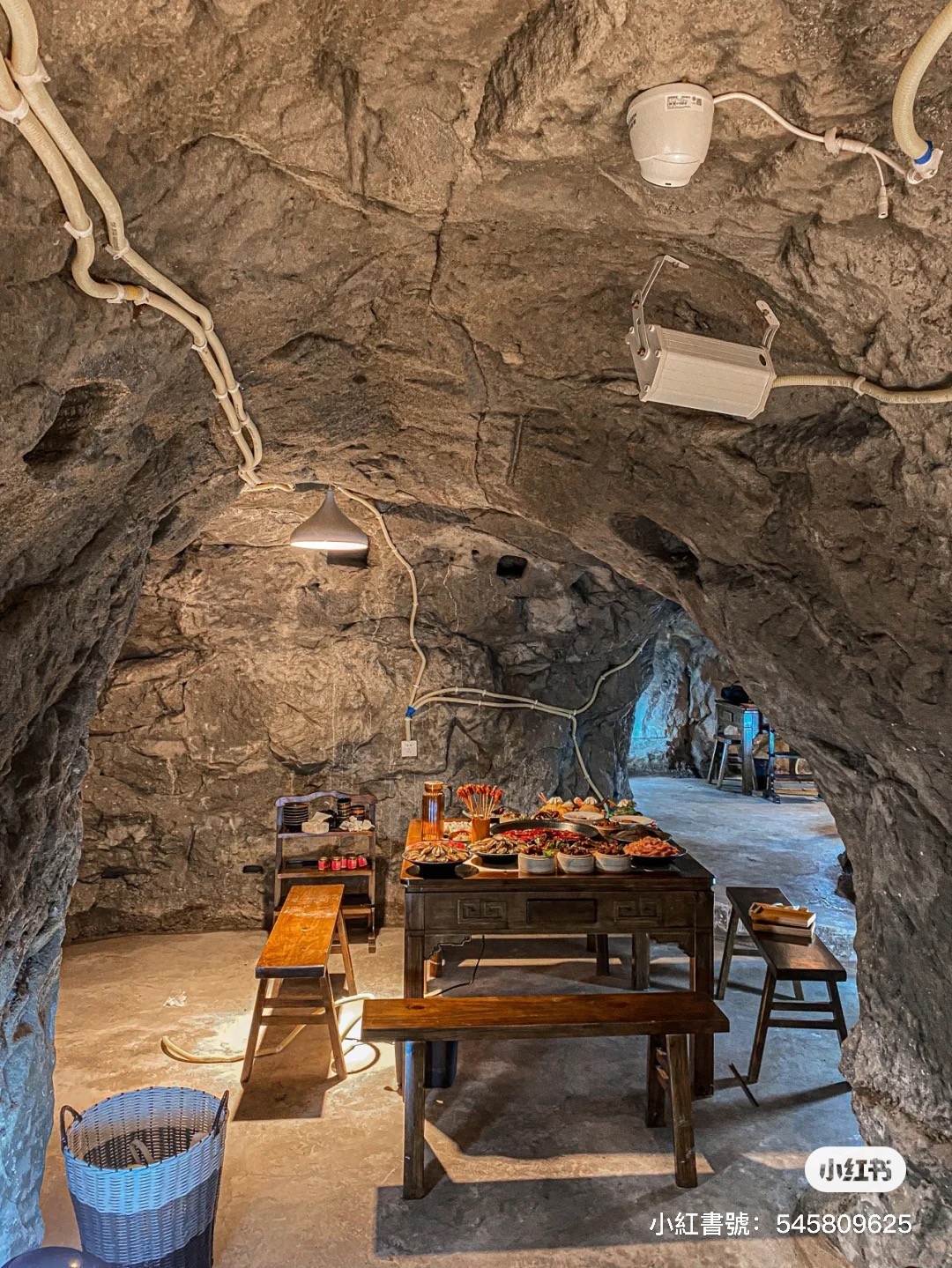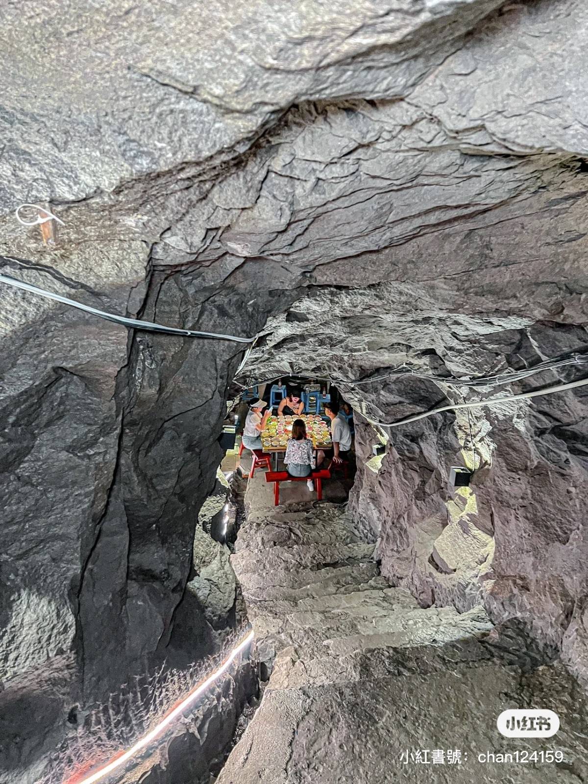 由于餐廳位置真的太過隱密,連導航都無法準確定位,很多人都需要問在地人才找得到確切位置。沿著洞穴入口進去,越往下走越是涼快,跟外面40幾度大熱天超不同,腳下流水潺潺,而且越往深處手機信號越差,彷彿要通往秘密世界般新奇刺激!