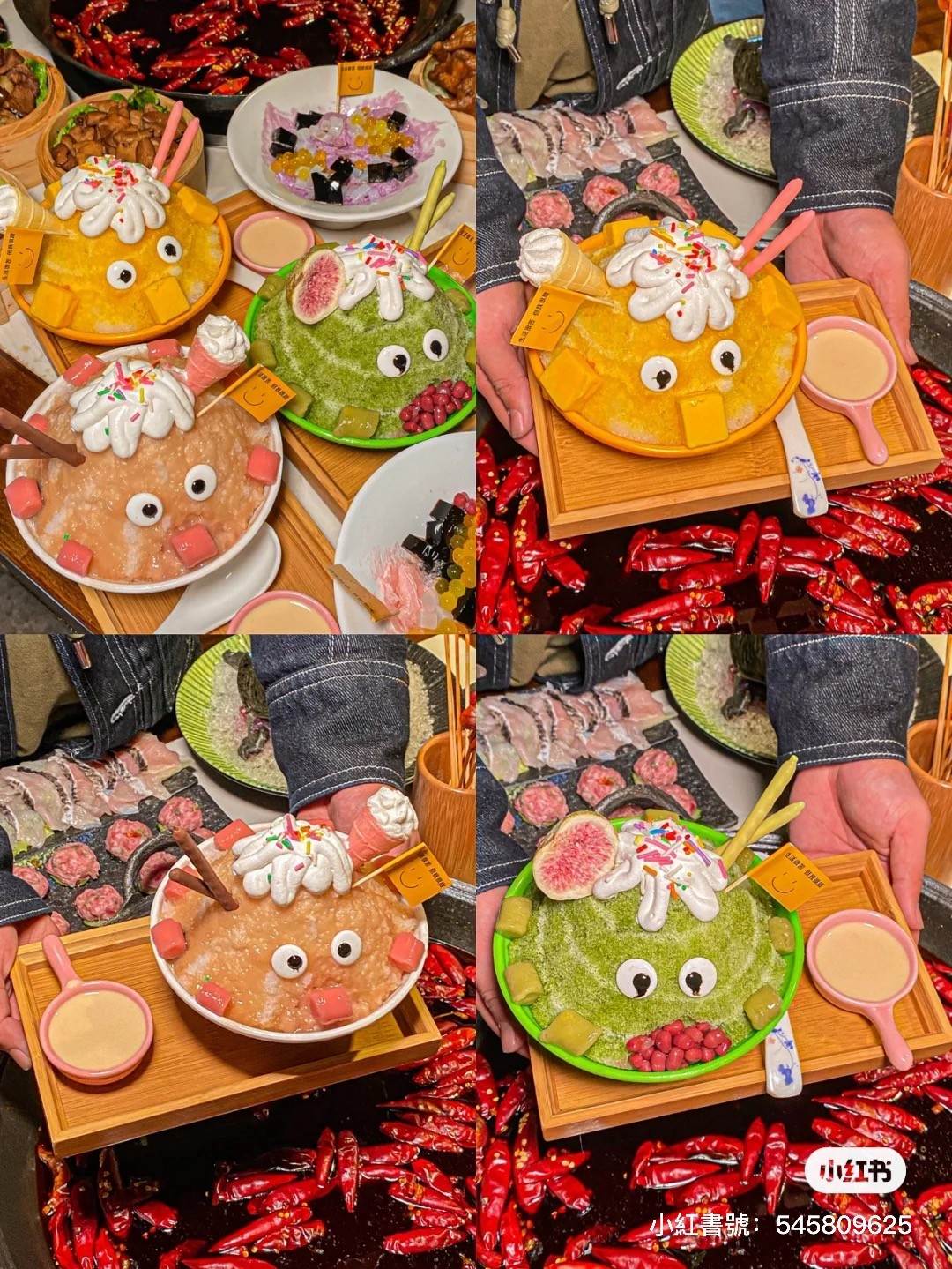 這裡最具特色的就是「九宮格老火鍋」,一個套餐可以吃到48道小菜,其中必點的就是道地的牛油火鍋,牛鍋湯底香味四溢,越吃越醇厚香濃,當然也是地獄辣椒等級,喜歡吃辣的可以嘗試,另外餐後甜點是怪獸綿綿冰,一共三個口味,可以解辣解膩,全部換算下來大概台幣1280元,真的俗又大碗!