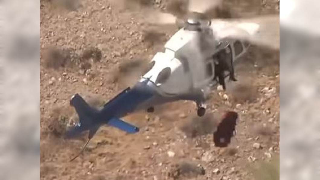 美國亞利桑那州一名74歲的女性登山客在登山途中受傷,救難隊出動直升機救援,但在把擔架上拉到直升機時有氣流來搗亂,擔架在空中以高速旋轉了足足2分半鐘,事後婦人頭暈想吐幸好沒有大礙。救難人員出動直升機救人,沒想到卻出現這一幕。
