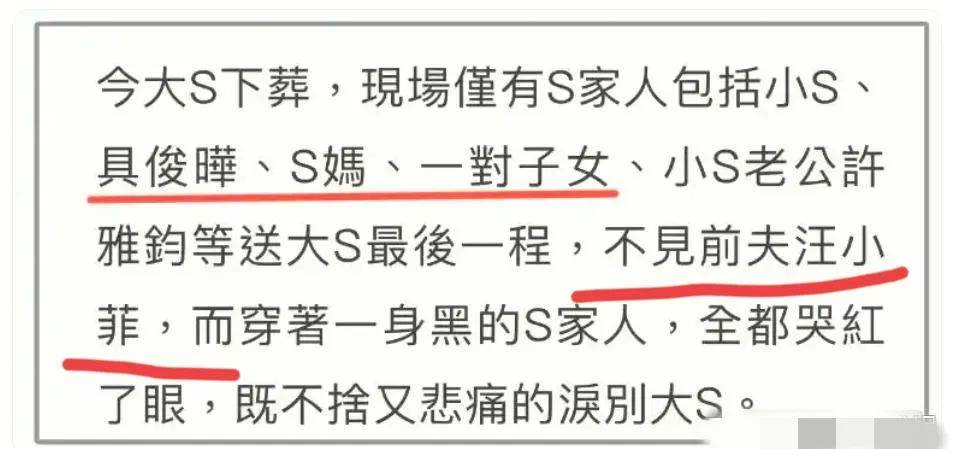 他非常確定的說汪小菲的兩個孩子沒參加大S葬禮,而S家的御用記者報道稱大S的兩個孩子也在,而汪小菲沒被邀請,卻說未見前夫汪小菲身影。