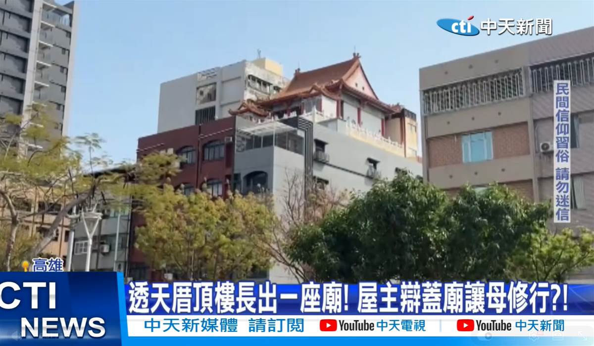 高雄屋頂竟有一座宮廟。(圖/中天新聞)