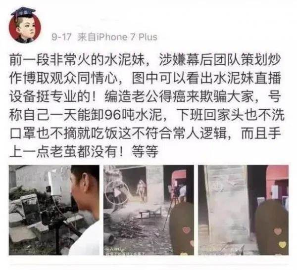 有網友發現并揭露了她的身份,指出她并非真正以搬水泥為生,而是在刻意營造一種反差極大的形象來博取關注。她每天搬運96噸水泥的夸張說法更是引來了眾多質疑,有細心的網友計算出,若按一袋水泥100斤計算,她一次扛五六袋的重量顯然超出了常人的承受范圍。