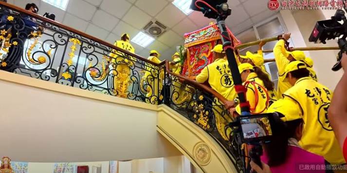 白沙屯媽祖鑾轎12日上午行經竹北市文信路時,胡漢龑率親友身穿招牌「東北大花」服跪地接駕,不斷高喊「媽祖!媽祖!我愛你!」全家人依序鑽轎底領福。沒想到賜福結束後,鑾轎隨即180度迴轉,駛入胡漢龑位于文信路的「羅浮宮」豪宅內停駕,一度上到啟德企業二樓臨時辦公室「巡視」,胡董緊跟在後,雙手合十。