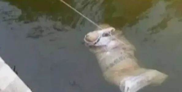 有一位常年在河邊散步的老人,順著味道一路走到岸邊,一眼就看見水面水草當中鼓鼓囊囊的塑料袋,就那樣靜靜浮在水面上一動不動。