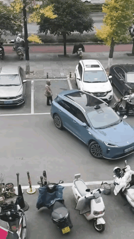 我正欲反駁,妻子在我耳邊說"自動泊車",隨後我讓妻子率先下車,打方向將車橫在車位前,穩穩擋住入口。