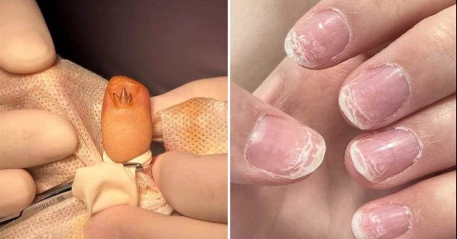 醫生表示,美甲時,往往會在原有的指甲上覆蓋上一層「穿戴甲」,在穿戴甲的長期壓迫下,指甲底部就容易出現裂縫。同時,不恰當的美甲或者過度頻繁美甲會損傷到甲母質及甲母質周邊的組織,容易形成組織炎癥和異常增生,增生的組織就會從縫隙中長出來,侵佔原有甲板生髮部位。