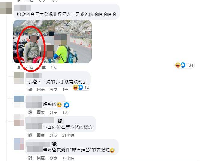 由于此事未有定論,因此兩派網友各執己見、爭論不下,終于在前天,有女網友出面回應,直言這個「灰白軍人鬼魂」,其實是自己的父親,同時將一家的自拍照放上留言,以證明所言不虛,「拍謝啦,今天才發現此怪異人士是我爸啦,哈哈哈哈哈」。得知是一場烏龍後,山友們懸著的心才終于放下,「原來不是魔神仔,以後可以安心爬了」、「不會心驚驚了」、「你早說嘛小姐,害我怕得要命」。