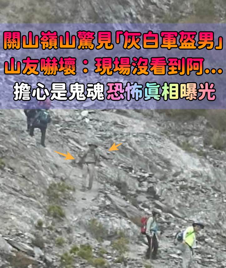 原PO表示,友人當時正要登關山嶺山、與隊友在拍照時,就發現這名軍裝灰白人影,與其他入鏡的彩色人影差別很大。但事後詢問友人,他卻堅持沒有看到此人,讓他頓感疑惑,「之所以怪異是那位山友戴著像大鉢形狀的帽,且衣著樸素單薄。想請問廣大的山友有見過這位?」,並表示山中常有鬼神奇譚,很可能是鬼魂作祟。