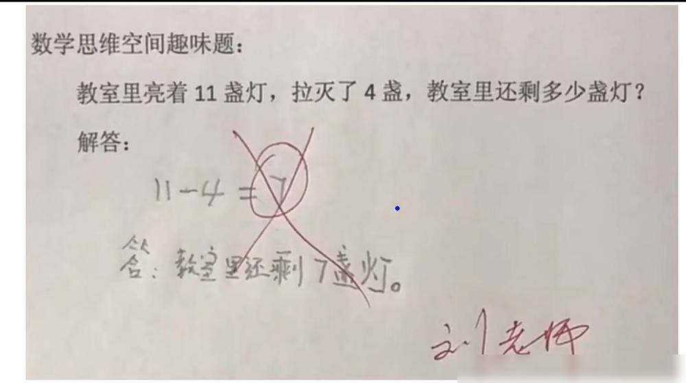 這位家長在和數學老師進行交流的時候,直接問他:「老師,昨天那個十一盞燈的題,你憑啥給我兒子錯?」