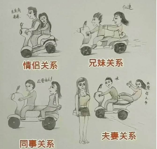 無論是甜蜜的情侶關系、熟悉又疏離兄妹關係,還是禮貌的同事關系、搞笑的夫妻日常,每種關系都有其獨特的表現形式。而這些看似平凡的騎車姿勢,背后卻藏著人與人之間最真實的情感。