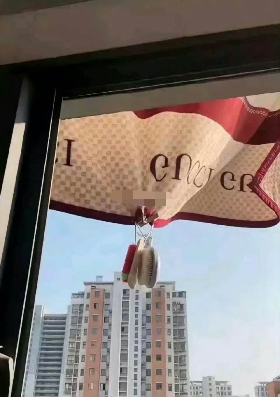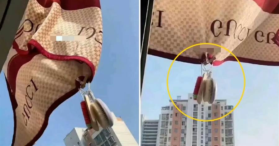 然而,令人意想不到的一幕發生了!就在小李使用震樓器的第二天清晨,他赫然發現,樓上鄰居的窗外,懸掛起了一件奇特的「宣言物」。