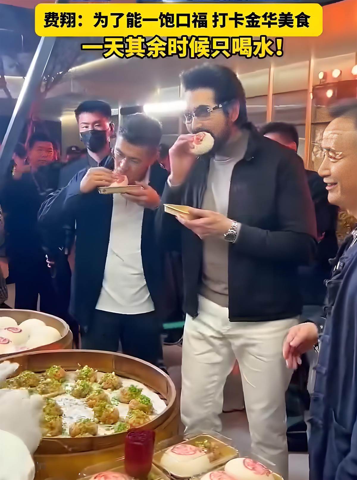 費翔在金華美食街上大快朵頤,他吃清明稞、謝家餛飩、湯圓。他邊吃邊說:餓了一天,終于等到這一頓了。