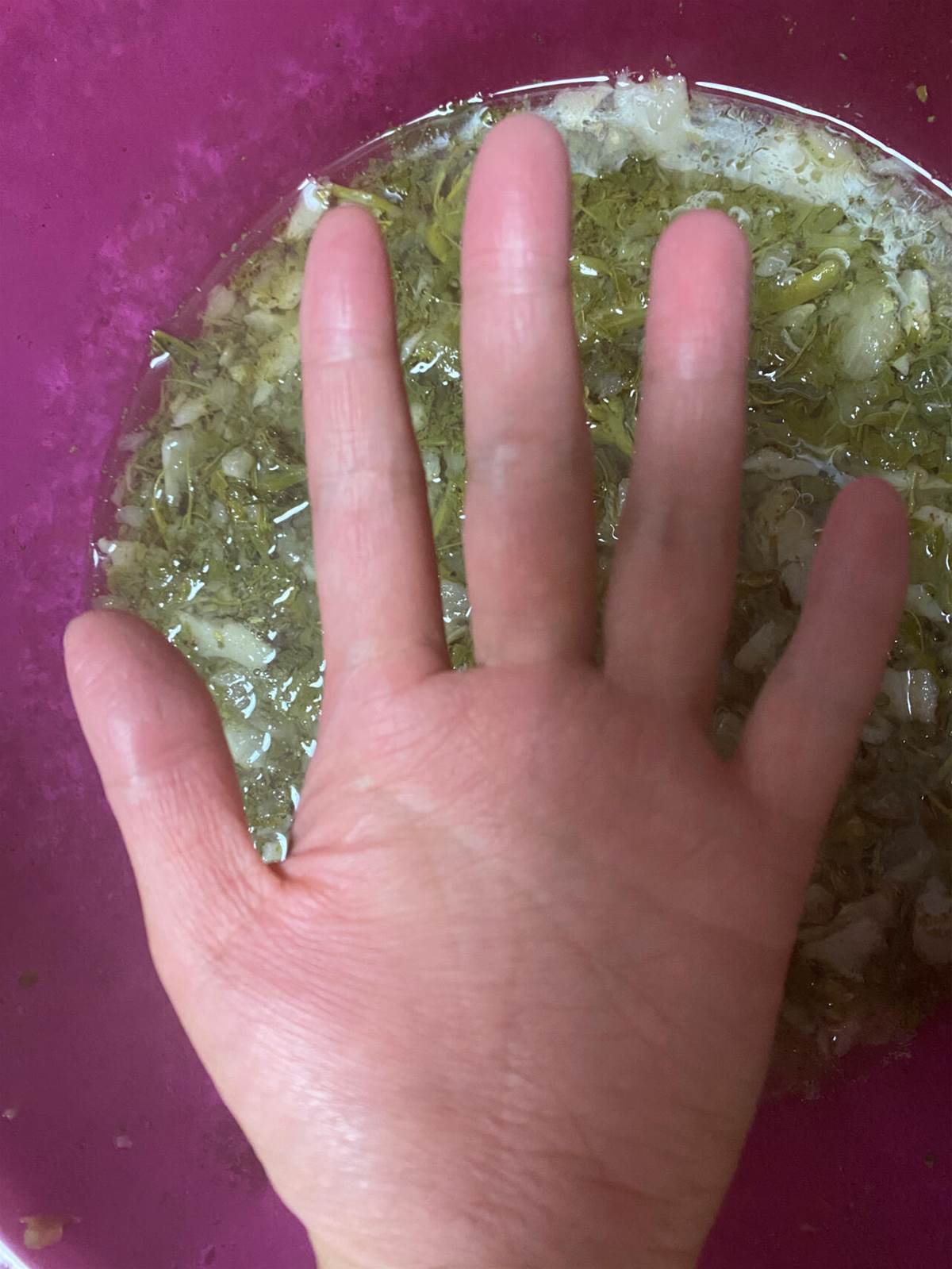 很疼,紅彤彤」,感覺快要「脫第四層皮了」。走投無路之際,轉機出現在父親打聽來的一個偏方——泡帶葉子的白胡蘿卜水,市場上只有沒葉子的,特地去跟人家要,泡了十來天,基本已經好了。 做法:帶葉子白蘿卜用一個什麼弄得細細的,帶汁加水下去熬到顏色變了,像圖里那樣把手放進去泡20分鐘,涂上茶油,就可以啦!簡單又便宜,不妨試試~