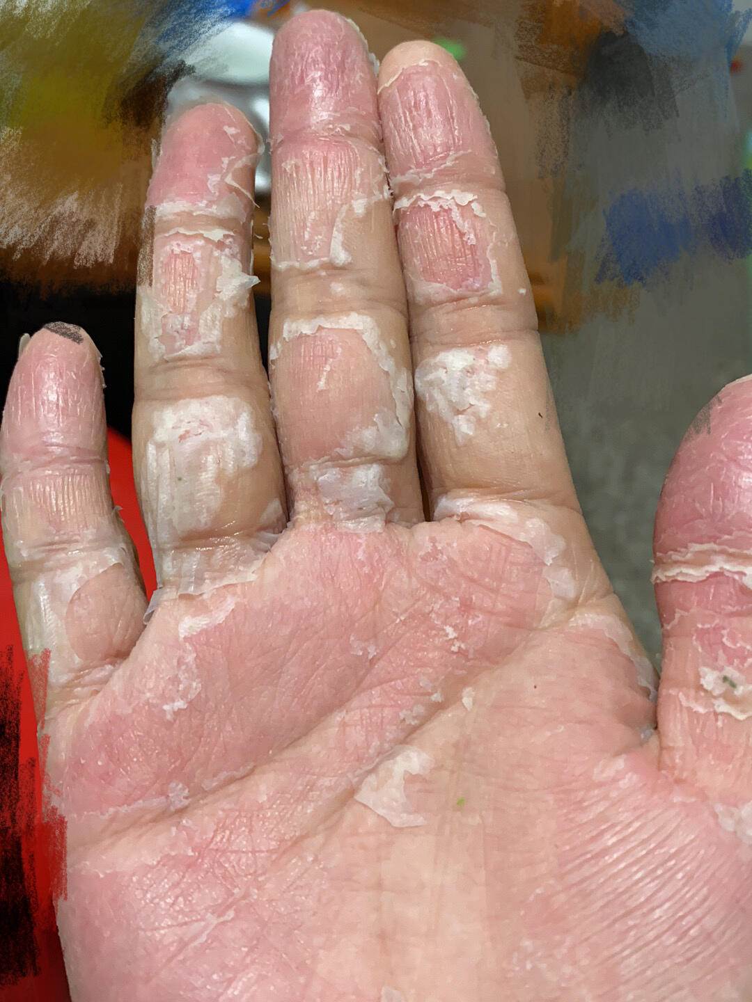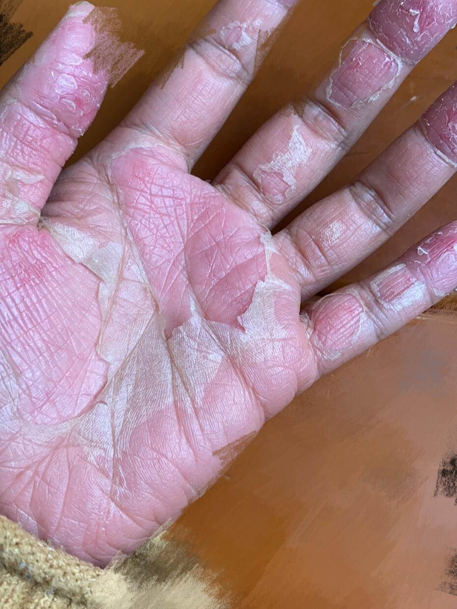 于是,他開啟了一場自助「實驗」,幾乎試遍了能想到的常用舒緩品:凡士林、魚肝油、維生素E、茶油…… 結果卻適得其反,手部狀況惡化,變得「