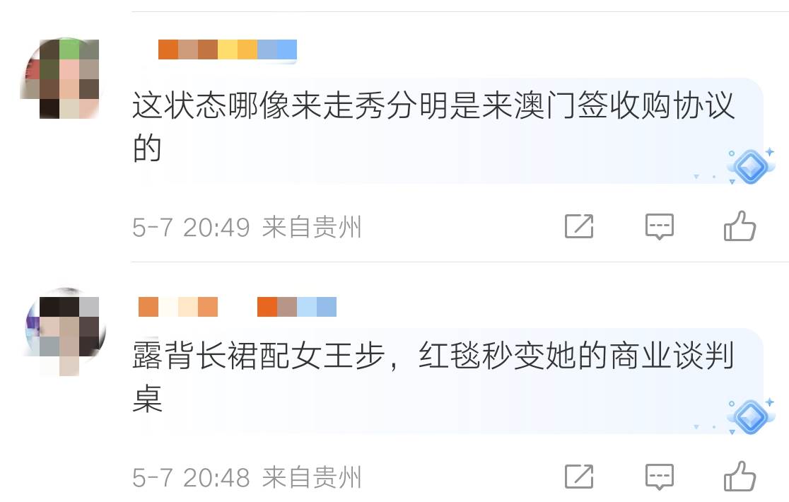 但即便如此,她全程昂首挺胸,面對鏡頭笑容自信,這份氣場,讓不少網友感慨:「這狀態哪像來走秀分明是來澳門簽收購協議的!」