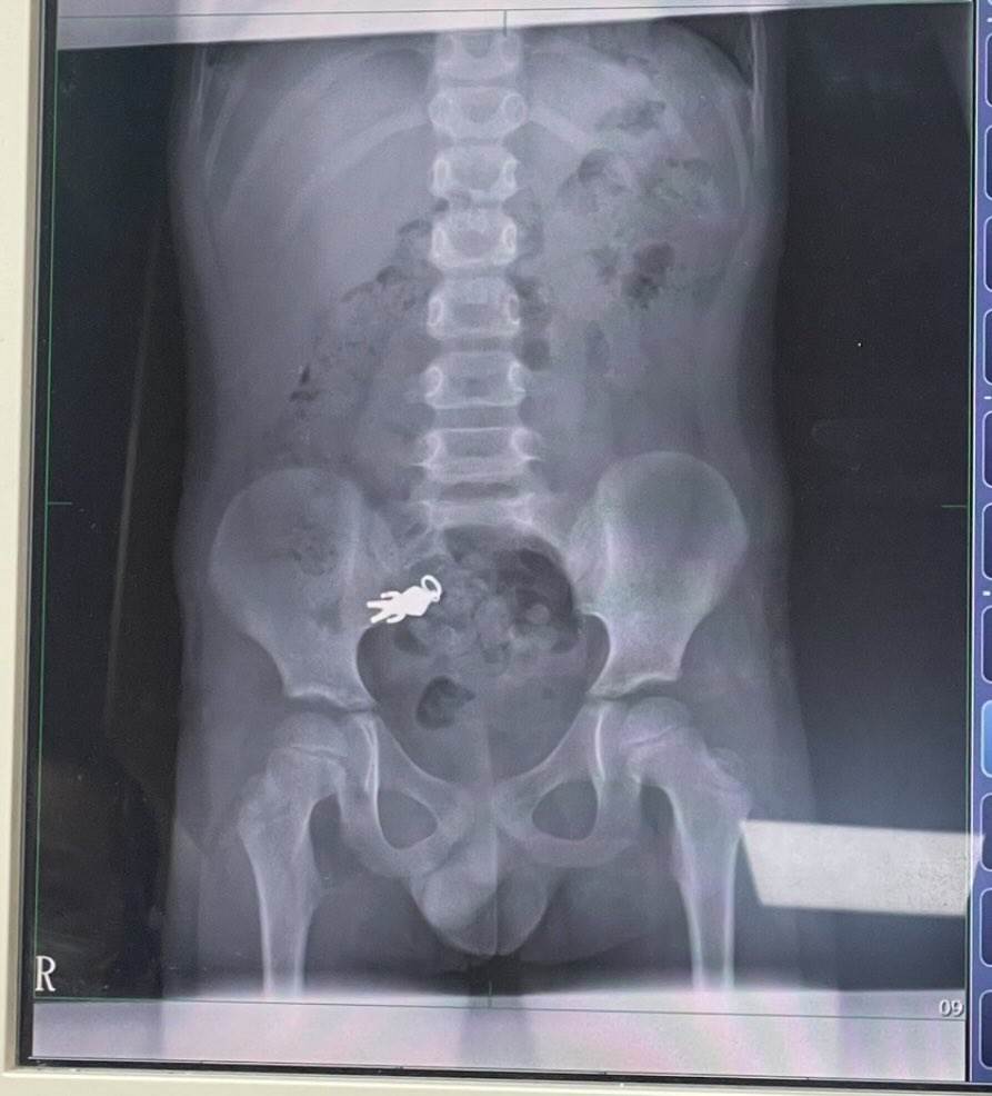 所幸經過詳細檢查,男童的生命徵象相當穩定,也沒有出現任何不適癥狀。醫師建議家屬不需立即採取開刀或侵入性治療,只要持續觀察男童的排便情況,等待吊飾自然排出即可。