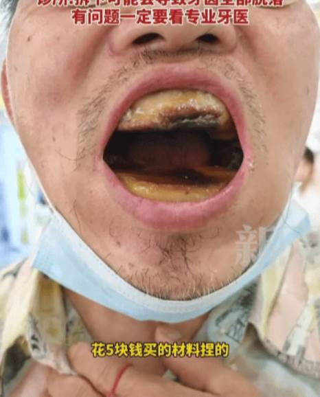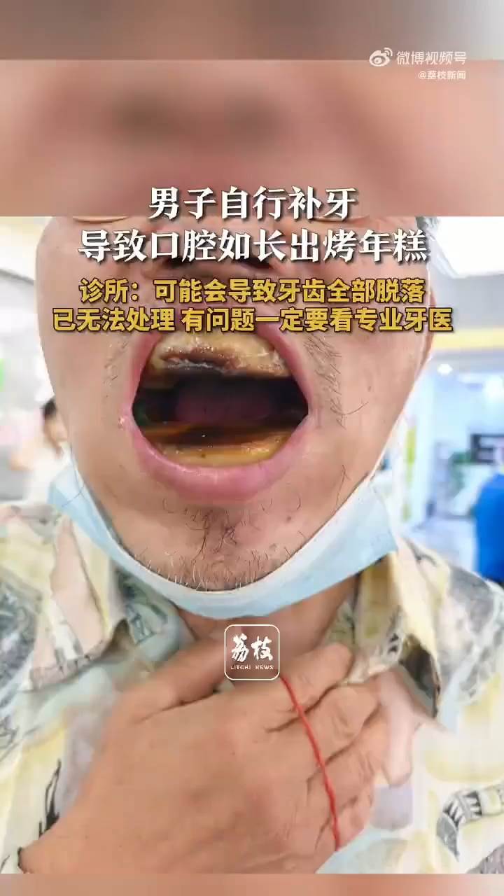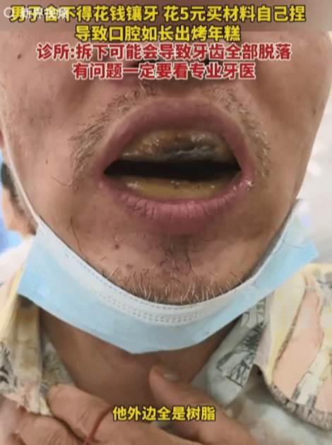近日,一名中年男子因舍不得花錢去專業診所鑲牙,竟從網上花費5元購買樹脂材料,自行在家中進行補牙操作,結果導致口腔嚴重受損,牙齒外部被劣質樹脂嚴實包裹,形態酷似「烤年糕」,引發廣泛關注。
