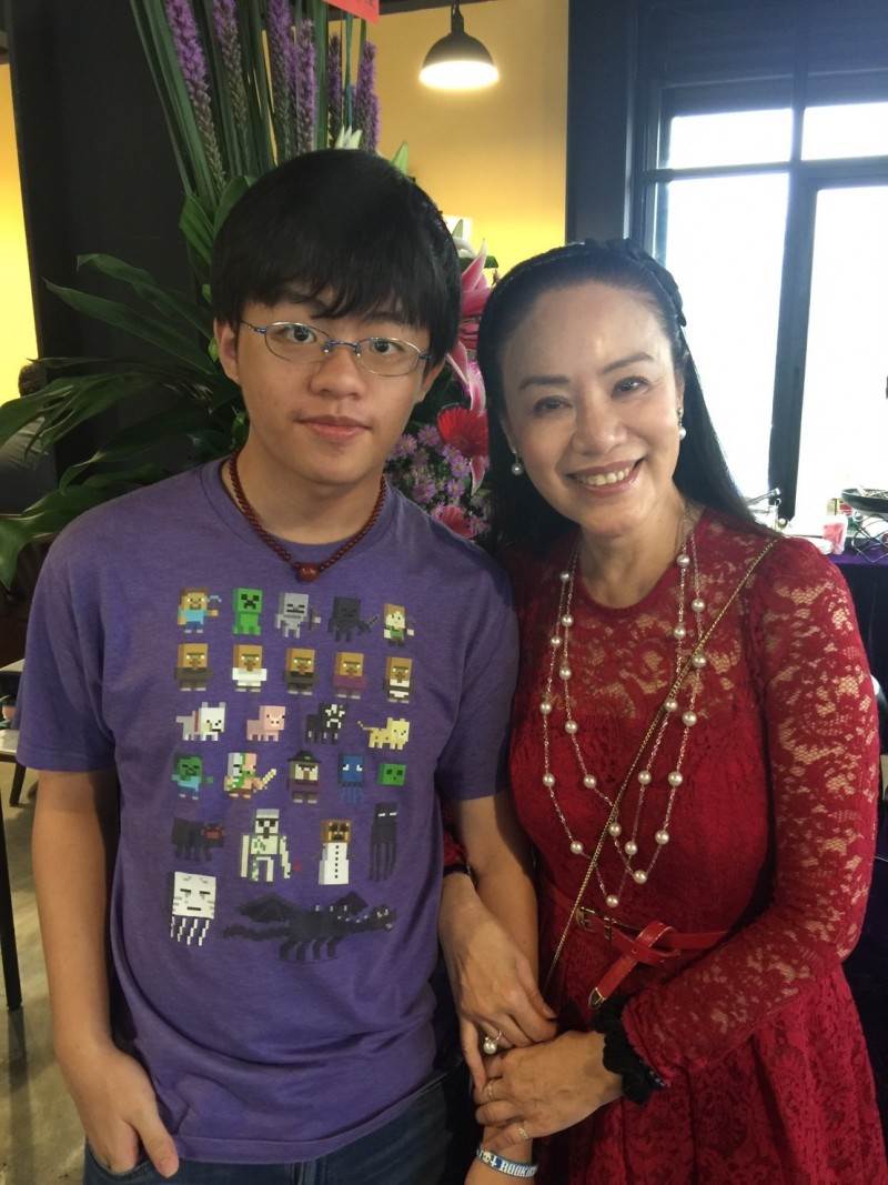 金佩姍投資露營事業,開心拉著大兒子龍龍合照。